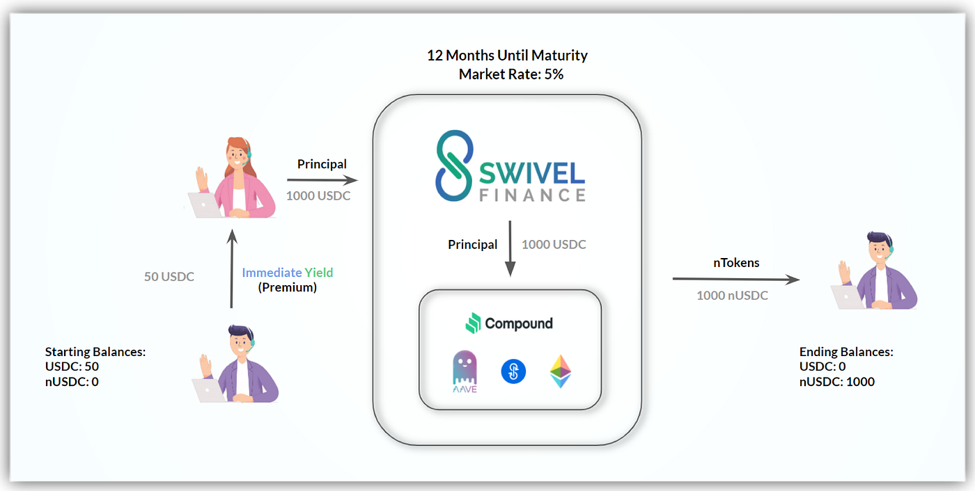 由于利率会波动,主动的市场参与者会要求有迅速调整仓位的能力。为了帮助这样的市场参与行为,Swivel会提供这样退出或卖出nTokens仓位的能力。